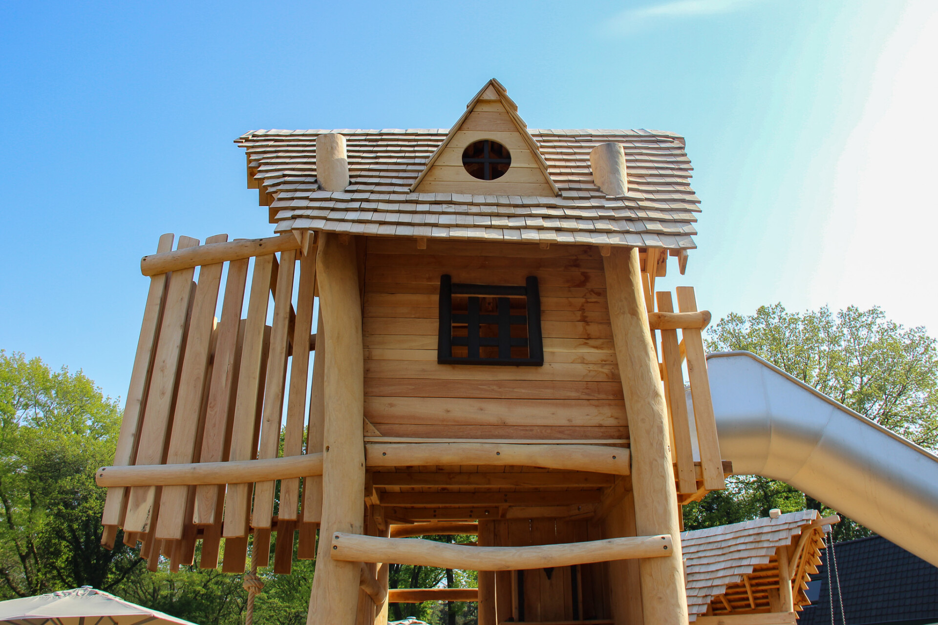 In de gerealiseerde speeltuin pronkt onder andere een imposante speeltoren compleet met een hoge glijbaan. De speeltoren is ontworpen om oudere kinderen uit te dagen. De jongere bezoekers kunnen op waterbaan of het andere speeltoestel met een lager niveau, naar hartenlust klimmen en glijden. Terwijl ouders ontspannen op het terras, genieten kinderen van verschillende leeftijden van hun speelavonturen. Zo wordt de vakantie pas echt onvergetelijk!