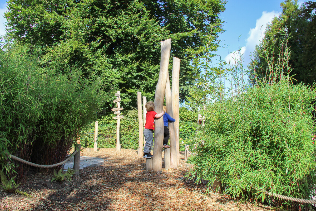 Beide zones zijn aangekleed met veel beplanting om het echte natuurlijk buitenspelen te beleven. De beplanting wordt beschermd door plantvakbescherming.