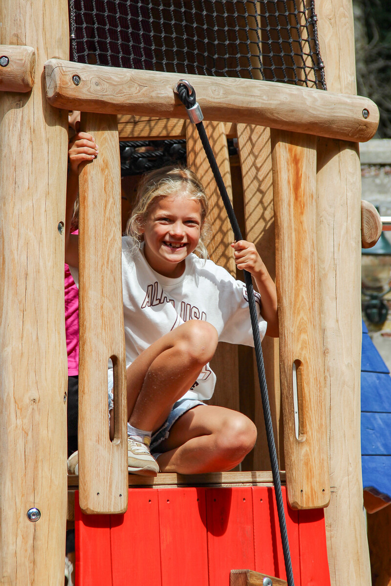 Dit speeltoestel is speciaal ontworpen voor jongere kinderen. Ze kunnen er klimmen, glijden, fantaseren en spelen in hun eigen sprookjeswereld. Terwijl ze zich vermaken, beleven ze hun eigen avonturen als kapitein, zeemeermin of strandjutter. Precies zoals het in Sprookjeswonderland bedoeld is.