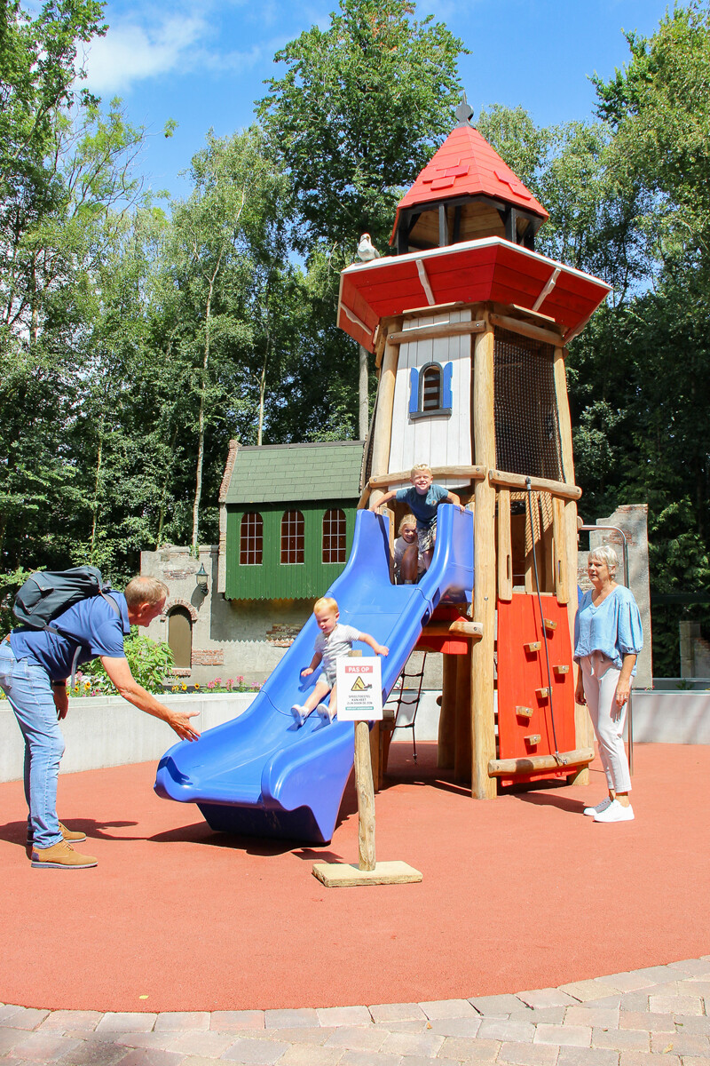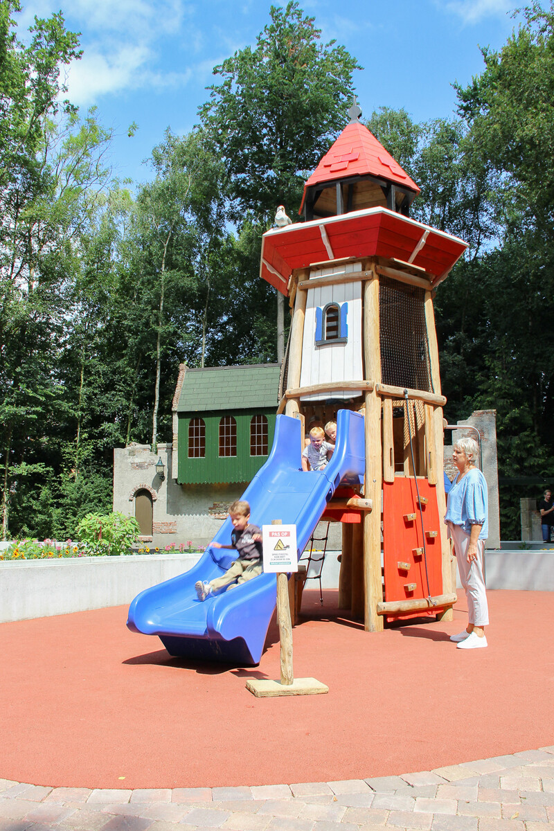 In attractiepark Sprookjeswonderland plaatsten we een bijzonder speeltoestel dat perfect past bij de sprookjesachtige sfeer van het park. De speeltoren is gemaakt van duurzaam robiniahout en afgewerkt in frisse tinten rood, blauw en wit. Deze kleuren, samen met de speelse vormen en vele details, laten het zee-thema helemaal tot leven komen.